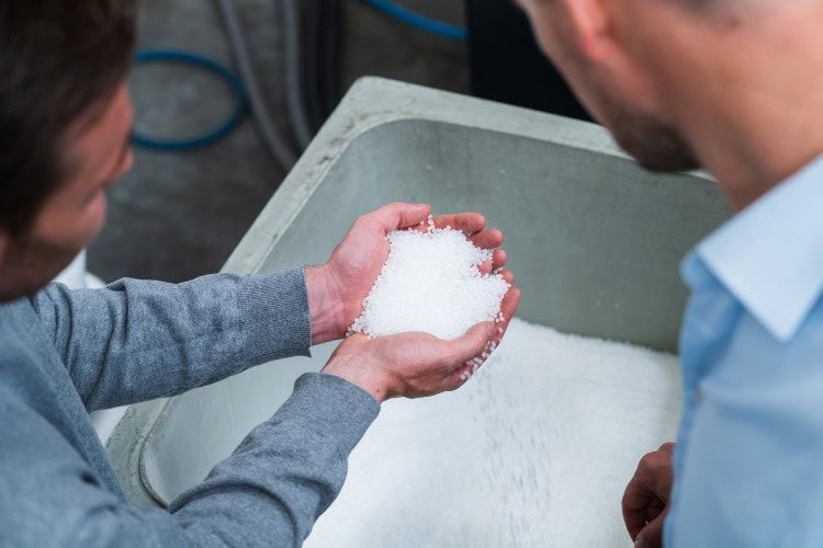 - Kunststof smelten – Granulaat (korrels) wordt verhit tot het vloeibaar is.